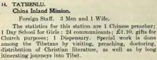 - ↑ Zi, Yu (2017). "A Description of CIM Missionary Workers to the Tibetan Highlands Prior to 1950". omf.org. Retrieved 15 May 2021.