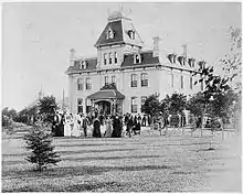 Prior to the foundation of Manitoba, the Lieutenant Governor of the Northwest Territories occupied a designated residence within the walls of Upper Fort Garry; a house that was, at one point, used by Louis Riel as president of the provisional government of Red River. After the new province joined Confederation on 15 July 1870, a structure five kilometres outside of Winnipeg was leased for use as the lieutenant governor's residence, known as Silver Heights,[3] but it was found unsuitable, given its size and distance from the capital. Instead, the lieutenant governor remained at Upper Fort Garry until the present Government House was completed.[4]