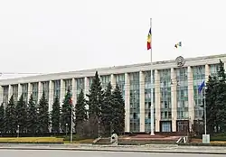 The Government of Moldova (Romanian: Guvernul Republicii Moldova) is the government of the Republic of Moldova. It is housed on the Government House at the Great National Assembly Square in Chișinău, the capital of Moldova.[1] Currently, the President of Moldova is Maia Sandu, while the Prime Minister of Moldova is Dorin Recean. The current ruling cabinet of Moldova is the cabinet of Dorin Recean, incumbent since 16 February 2023.[2]