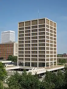 Until 2007, City Hall was located in the civic center, a sector of downtown that included most governmental services, including the Federal Courthouse, Tulsa County Courthouse, Tulsa City-County Library, and The Convention Center. In 2007 Mayor Kathy Taylor proposed to move City Hall from its civic center location to One Technology Center, on the northwest corner of Second Street and Cincinnati. Taylor argued that a recent study showed the move would save $15.2 million over a 10-year period. Most of the savings would come from the new energy efficient building.[7] The move then allowed the former City Hall property to be redeveloped into a new Aloft Hotel,[8] to support the BOK Center. The conversion was completed in 2013.[9]