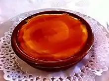 Goxua (which means "sweet" in Basque) is a typical dessert from the Basque Country, especially from Vitoria-Gasteiz.[1] Gasteiz pastry chef Luis Lopez de Sosoaga claims to have first created the dessert in 1977. Although its invention is popularly attributed to the pastry chef from Vitoria Luis López de Sosoaga,[2] the pastry chef from Mirandese Alberto Bornachea affirms that goxua was invented by his father trying to copy the Catalan cream, baptizing the resulting dessert as cazuelita.[3]