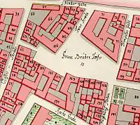 Gråbrødretorv (then spelled Graae Brødre Torv) on Gedde's map of Frimand's Quarter from 1757