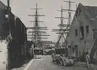 Royal Greenland Dock painted by N. J. Bredal in 1910