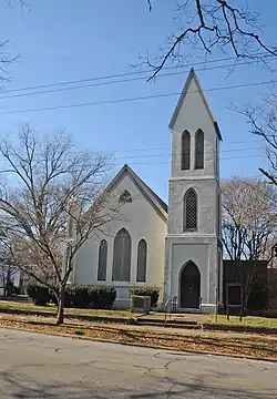 Grace Episcopal Church is a historic Episcopal church located at 404 Washington Avenue in Weldon, Halifax County, North Carolina. It was built between 1872 and 1889, and is a rectangular Gothic Revival style stuccoed brick building. It has a steep gable roof, three-stage bell tower, two-stage buttress with capped pinnacle, and lancet windows.[2]