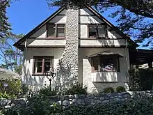 In December 1908, the family moved to the art colony at Carmel-by-the-Sea, California.[17] They moved into a large, Tudor-style two-story house at 13th Avenue, one of the first homes constructed in southwest Carmel in 1905, by architect Eugenia Maybury, one of Carmel's first female architects.[18][19] The house was located on a bluff a block away from Carmel Beach. That particular section of the beach became known as Cooke's Cove.[20] The home is included in the Carmel Inventory of Historic Resources,[21] and has been registered with the California Register of Historical Places for its historical connection to the MacGowan sisters and to architect Eugenia Maybury.[22]