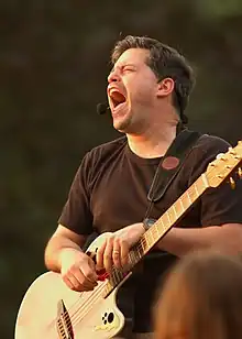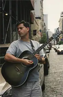 Graham Clarke performing in Bedford, NY in 2003 holding his guitar, Cinnamon