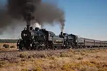 Beginning in January 1990, all work on GCR's equipment, including No. 29, was moved inside a newly-constructed locomotive shop with air conditioning and necessary tools.[29] No. 29 entered service for GCR on April 26, and it pulled its first train between Williams and the South Rim of the Grand Canyon.[19][20][30] It was quickly discovered that Nos. 18 and 29 could only pull six and seven passenger cars on the line unassisted, and by the mid-1990s, GCR's passenger train schedule was expanding.[31][27] GCR simultaneously acquired Ex-Via Rail FPA-4 diesel locomotives for use in pulling their expanded trains, and the railway approved the extensive rebuild of a bigger steam locomotive they had acquired, Ex-Burlington Route 2-8-2 No. 4960.[32][33][27][34][35] In 1995, No. 29 was removed from service to undergo a mandated boiler inspection.[20][36] The locomotive subsequently received a major rebuild that took 26,000 hours of labor and cost over $1 million to complete.[37]