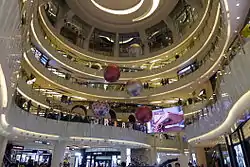 The original use of a round atrium as the central core in the mall, with the majority of the shops circling the atrium in a 360-degree circle design, was another distinctive feature of the mall. In the center of the mall was a circular atrium with a diameter of 30 meters, which developers then spent about $3 million to install large television screens and a musical fountain controlled by computers. However, the design made many visitors to the mall confused and lost, and modernisation works were carried out since 2002; this divided the mall into 4 areas: A, B, C and D. Another major renovation commenced in 2011 and completed in September 2015.