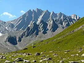 The Grand Golliat (also spelled Grand Golliaz) is a mountain of the Pennine Alps, located between the Petit Col Ferret and the Great St. Bernard Pass. At 3,238 metres above sea level, its summit straddles the border between Switzerland and Italy, separating the Swiss canton of Valais from the Italian region of Aosta Valley. The name Golliat comes from "gouilles" or small lakes located on the Italian side of the mountain.[2]