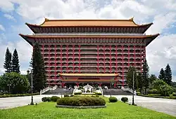 The main building of the hotel is one of the world's tallest Chinese classical buildings[1] at 87 metres (285 ft) high.[2] It was also the tallest building in Taiwan from 1973 to 1981.