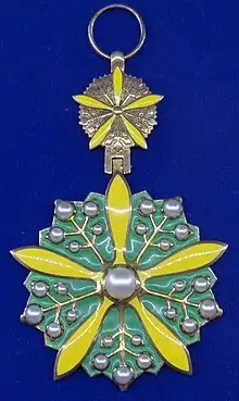 The Grand Order of the Orchid Blossom (Chinese: 大勲位蘭花章 Dàxūnwèi lánhuā zhāng) was an award of the Empire of Manchuria. It was established by Imperial Decree No. 1 on March 1, 1934 and published by law of April 19, 1934. The order consisted of only two classes: Grand Collar and Grand Cordon.[1] The order was the equivalent of the Japanese Order of the Chrysanthemum.