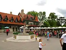 Also on the farm is the Busch family mansion known as the "Big House", and a house in which Ulysses S. Grant resided between the Mexican and Civil Wars called White Haven. This had been his wife, Julia Grant's, family home. Colonel Frederick Dent, Julia's father, gave 80 acres of the farm to the couple as a wedding present on what today is Rock Hill Road. Grant built his cabin on this land.[2] Colonel Dent was a farmer in St. Louis County. He owned 925 acres along Gravois Creek, 10 miles southwest of the city, and owned slaves to farm the land. Five miles from the Dent farm was Jefferson Barracks, where Ulysses S. Grant was assigned in 1843, after attending West Point and rooming with Julia Dent's brother.[2] Grant's cabin was featured at the 1904 World's Fair. White Haven, next door to Grant's Farm, the Busch family estate, is now a national historic site: the Ulysses S. Grant National Historic Site.[2]