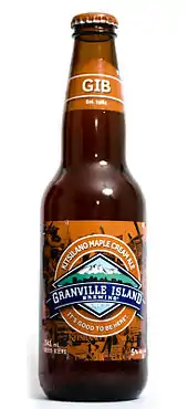 The Granville Island Brewing Company (GIB) was a brewery originally based on Granville Island in Vancouver, British Columbia, Canada. It was founded in 1984 and calls itself "Canada's first microbrewery". In 1989, it was sold to the wine conglomerate Andrew Peller Ltd. In 2009, it was bought by Creemore Springs, a subsidiary of Molson Coors,[1] which in 2016, became the third largest beer corporation in the world.[2] Of brewers with locations in British Columbia, Granville is the seventh largest based on sales to the BC Liquor Distribution Branch.[3]