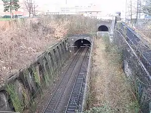 Trackbed of the disused spur line near the site of the former station, over the cutting of the replacement line