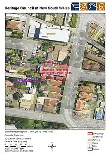 - 1 2 3 4 5 6 7 8 9 10 11 12 13 14 15 16 17 18 19 20 21 22 23 24 25 26 27 28 29 30 31 32 33 34 35 36 37 38 39 40 41 42 "Granville Town Hall". New South Wales State Heritage Register. Department of Planning & Environment. H01679. Retrieved 2 June 2018.