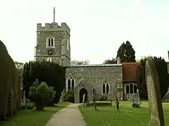 The medieval church is of flint construction.