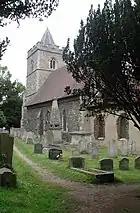 The Church of England parish church is a medieval building dedicated to St John the Baptist. The nave and chancel date from the 11th century with a Norman chancel arch. A bell tower was added in the 15th century and the building was restored in 1866. It is a Grade II* listed building.[6] The stocks in the churchyard date from the 17th or 18th century and were moved there from behind the George IV pub in 1887.[7]
