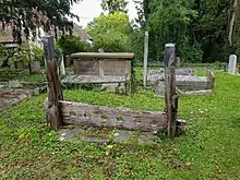 The village stocks in St John's churchyard.