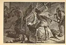 19th century woodcut depicting a raid by Native American warriors on a colonial settlement similar to Great Cove.