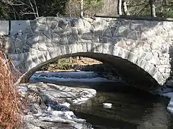The Great Hollow Road Stone Arch Bridge (also known as the Etna Stone Bridge) is a historic stone arch bridge carrying Great Hollow Road over Mink Brook in Hanover, New Hampshire. Built by the town in 1914, it is one of two stone bridges in the town, and a finely crafted and little-altered example of stone masonry of the period. The bridge was listed on the National Register of Historic Places in 1997.[1]