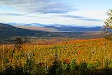 The Great North Woods, also known as the Northern Forest,[1] are spread across four northeastern U.S. states: Maine, New Hampshire, Vermont and New York in the New England area. The area spans from the Down East lakes of Maine to the Adirondack Mountains of New York, generally bordering the Canadian province of Quebec. Collectively, the Great North Woods make up a 26 million acre (105,000 km2) forestland.[1][2][3]