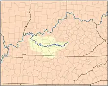 The Green River is a 384-mile-long (618 km)[3] tributary of the Ohio River that rises in Lincoln County in south central Kentucky. Tributaries of the Green River include the Barren River, the Nolin River, the Pond River and the Rough River. The river was named after Nathanael Greene, a general of the American Revolutionary War.[4]
