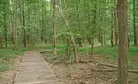 Greenbelt Park is a park in Greenbelt, Maryland, that is managed by the National Park Service. The forested park lies approximately 10 miles (16 km) northeast of Washington, D.C., and is situated just within the Capital Beltway (which bounds the park to the northeast). The park land was originally intended to form part of the green belt surrounding the city of Greenbelt. The southern portion was assigned to the National Park Service, thus forming the park, while another section became part of the Henry A. Wallace Beltsville Agricultural Research Center (BARC).