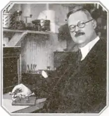 Greenleaf Whittier Pickard (February 14, 1877, Portland, Maine – January 8, 1956, Newton, Massachusetts) was a United States radio pioneer. Pickard was a researcher in the early days of wireless. While not the earliest discoverer of the rectifying properties of contact between certain solid materials, he was largely responsible and most famous for the development of the crystal detector, the earliest type of diode detector.[2] The crystal detector was the central component in many early radio receivers from around 1906 until about 1920. Pickard also experimented with antennas, radio wave propagation and noise suppression. On August 30, 1906 he filed a patent for a silicon crystal detector, which was granted on November 20, 1906. On June 10, 1907 he filed a patent for a Magnetic Aerial (a loop aerial) which was granted on January 21, 1908. Pickard's loop antenna had directional properties that could be used to reduce interference to the intended wireless communications. On June 21, 1911 he filed a patent on a crystal detector incorporating a springy low inertia wire of about 24 gauge formed with a loop or helix and pointed to make contact with the crystal. Crystal detectors incorporating this construction would become the most widely used and popularly known by the term cat whisker detector. This patent was granted on July 21, 1914.[3] Greenleaf Whittier Pickard was named after his great-uncle, the American Quaker John Greenleaf Whittier (1807-1892). Pickard was president of the Institute of Radio Engineers in 1913.[4]