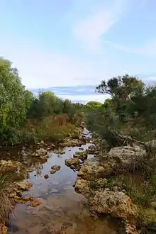 Greenough /ˈɡrɛnəf/ is a historical settlement situated in a floodplain (the Greenough Flats) 400 kilometres north of Perth, Western Australia and 24 kilometres south of Geraldton on the Brand Highway. The settlement's historical buildings are mostly built of local limestone and date to the second half of the 19th century. A sizeable collection of these are owned and managed by the National Trust of Australia. A remarkable feature of the Greenough Flats is its windswept trees, some of which are bent 90 degrees due to the prevailing coastal winds.