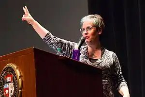 As a speaker, she is a member of the Speakers Bureau for the Secular Student Alliance and the Center for Inquiry.[7] She was a speaker on the Diversity in Skepticism panel at The Amaz!ng Meeting in July, 2011, the Reason Rally in 2012,[12] and the 50th annual convention of American Atheists in 2013.[13]
