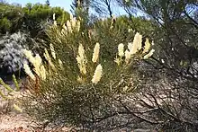 This grevillea grows in a variety of habitats from sandplain to mallee and is widespread in the south-west of Western Australia from near Shark Bay to Lake Grace and Hyden.[9][10] Subspecies cymbiformis grows in low heath and is restricted to a small area near Eneabba.[12][13]