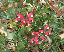 Grevillea insignis, commonly known as wax grevillea,[2] is a species of flowering plant in the family Proteaceae and is endemic to the south-west of Western Australia. It is an erect, bushy shrub with more or less oblong leaves with seven to seventeen sharply-pointed, triangular teeth, and more or less spherical or cylindrical clusters of cream-coloured flowers ageing to pink.