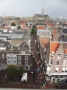 The Grote Houtstraat in Haarlem was originally just called the "Houtstraat" (Wood street) as it was the major road leading from the Grote Markt to the woods called the Haarlemmerhout.[1] Until the 15th century it ended at what is today the Gedempte Oude Gracht, at that time the southern canal of the city.[1] In the 15th century the town expanded southwards and the street was extended to the Gasthuissingel and a large town gate was placed near the bridge, which has since been torn down.