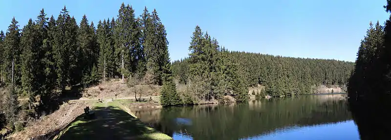 The Lower Grumbach Pond (German: Unterer Grumbacher Teich), usually just Grumbach Pond (Grumbacher Teich), is an old mining reservoir or Kunstteich between Hahnenklee and Wildemann in the Upper Harz mountains in Germany