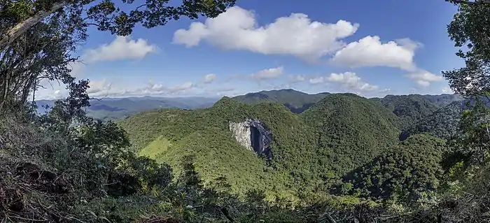 Gruta Casa de Pedra (SP-009) is a cave located in the karstic region of the Alto Ribeira Tourist State Park, between the municipalities of Apiaí and Iporanga, to the south of the State of Sao Paulo, Brazil.[1] It is 2,930 meters long and features the largest cave mouth in the world, measuring 172 meters high.[2] It is located in the final portion of the hydrographic sub-basin of the Maximiano stream which enters the cave for about 800 meters and flows into the Iporanga River.[3] Its name derives from the size of its portico, recognized as the world's largest.