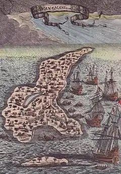Guanahaní (meaning "small upper waters land")[1] was the Taíno name of an island in the Bahamas that was the first land in the New World sighted and visited by Christopher Columbus' first voyage, on 12 October 1492. It is a bean-shaped island that Columbus called San Salvador. Guanahaní has traditionally been identified with Watlings Island, which was officially renamed San Salvador Island in 1925 as a result, but modern scholars are divided on the accuracy of this identification and several alternative candidates in and around the southern Bahamas have been proposed as well.