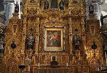 Detail of the Altar del Perdón, in the Metropolitan Cathedral of Mexico City. The scholarly comments of Guillermo Tovar de Teresa at the age of 11 with the then Mexican President, Gustavo Díaz Ordaz, about the fire in a structure and his criticism of restoration made him deserving of the official appointment of Counselor in Colonial Art, with a payment of a centenary.[3]