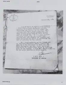 "I am delighted to witness a performance a dance drama based on National Integration presented by Pratibha Nrithakala Kendra, Trivandrum, and directed by the famous and distinguished dancer Chandrasekharan. This play describes the various periods through which we have passed from Vedic period up to the present day. It is a most thought-provoking play and one who attends this function will feel enthused and inspired and would strengthen his spirit of patriotism and love of sacrifice for his country."