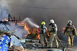 Due to the lack of enforced safety standards, the village has been affected by a number of fire accidents.[5] This includes one in January 2023, when a fire destroyed more than 60 homes in the town and forced the displacement of 62 residents.[14][15] The village reportedly has a number of services, including a post office,[12] a kindergarten and church, a security service, and even utilities like water, gas and electricity, for which payments are communal.[3][12]