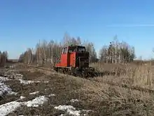 Gusevskoye peat railway emerged in the 1920s, in the area Gus-Khrustalny District, in a settlement named Gus-Khrustalny in 1931 became a town. The railway had a maximum length of about 100 kilometres (62 mi) at their peak.[1] Gusevskoye railway was built for hauling peat and workers and operates year-round with several pairs of trains a day. At present only 25 kilometres (16 mi) of the railway is operational, current operations include passenger traffic (workers-tourists) and freight traffic, transportation of peat. A peat briquette factory was built and put into operation in 2010 in a settlement named Gusevskiy.[2] A peat briquette factory was built and put into operation in 2011 in a settlement named Mezinovskiy.[3] About 2011 half of the railroad was dismantled. Formed two separate railway network.