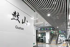 Gushan Station (Chinese: 鼓山站; pinyin: Gǔshān zhàn; Fuzhounese: [ku˨˩ laŋ˥˥]) is a metro station of Line 2 of the Fuzhou Metro. It is located near Gushan Scenic Spot, Jin'an District, Fuzhou, Fujian, China. It started operation on April 26, 2019.[1]
