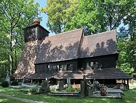 After the 1540s Protestant Reformation prevailed in the Duchy of Teschen. In 1563 a local Lutherans built a wooden church. It was taken from them (as one from around fifty buildings) in the region by a special commission and given back to the Roman Catholic Church on 23 March 1654.[9] The Corpus Christi Church burned down completely overnight on 2 August 2017, following an arson attack by three youths from Třinec.[10] The church was rebuilt, and consecrated on 6 June 2021.[11]
