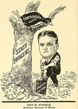 Born in New Gloucester, Maine, Sturgis was " educated in the town's common schools, and graduated from Bowdoin College in 1898. He received a law degree from Columbia University Law School in 1899, and studied law at the office of Thomas B. Reed".[2] Sturgis served as Maine Attorney General from 1917 to 1920.