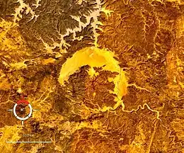 ![]() Landsat image of the Gweni-Fada crater; screen capture from NASA World Wind | |