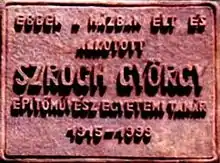 Szrogh György (January 23, 1915 – 29 November 1999) was a Hungarian architect and professor. He graduated in 1938 from Royal Jozsef Nador Technical University. After finished his studies, he worked in several places, such as the Louis Hidas studio, MÉMOSZ Construction Company, City Building Research Institute (VATI) and Residential Building Design Bureau (LAKÓTERV). He had participated in the UNESCO foreign exchange program between 1966 and 1967. At that time he was in England, Mexico and United States of America, when he learned new principles and methods of design. From 1966 he was professor at the Hungarian College of Applied Arts and led the Department of Architecture from 1966 to 1984.