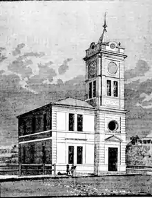 Gympie Town Council proposed to erect its town hall on land at Nash's Gully bounded by Mellor Street and Caledonian Hill which was to be reserved for this purpose. In July 1888 the Council requested that the Department of Public Lands grant them the Deed of Grant for the land as they proposed to erect a Town Hall upon it, but the Department of Public Lands agreed to issue the Deed of Grant only after the erection of a town hall on the site. In August 1888 a proposal that Gympie Town Council borrow £5,000 for the erection of a Town Hall was defeated by 40 votes. Subsequently, the Municipal Council erected a portion of the Town Hall, namely the left wing and tower, built of brick at a cost of £1,266. Its construction was supervised by local architect, Hugo Du Rietz and its builder was Joseph Jew. The town hall was opened by William Smyth MLA for Gympie on 4 March 1891 and the first council meeting held in the new chambers took place on the same day. In June 1891 a Deed of Grant to the Council of the Municipality of Gympie for 3 roods 22 perches (3,600 m2) "as a site for a town hall and no other purposes whatsoever" was granted.[1]