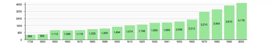 As of 2000, there were 1,584 people who were single and never married in the municipality. There were 2,124 married individuals, 255 widows or widowers and 215 individuals who are divorced.[9]