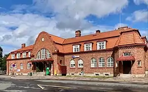 Hämeenlinna railway station (Finnish: Hämeenlinnan rautatieasema, Swedish: Tavastehus järnvägsstation) is located in the town of Hämeenlinna, Finland. Hämeenlinna belongs to the oldest railway stations in Finland, because the first railway line in Finland was opened between Helsinki and Hämeenlinna in 1862. The original station building, designed by the architect Carl Albert Edelfelt, was destroyed during the Finnish Civil War in 1918. The current red brick station building was designed by Thure Hellström and completed in 1921.