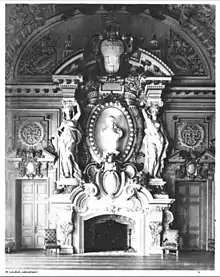 The plan accommodates large meeting rooms and halls on the ground floor, for French civil marriage ceremonies and meetings of the city council, and are as abundantly decorated as the exterior. The Salle des Fetes features further sculptural work by Injalbert, a figure of the Republic, and a companion figure La Touraine by Loiseau-Bailly.[5] Two caryatids on the mantel are credited to Henri Varenne.[6]