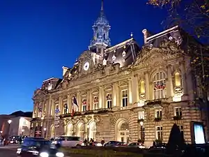 The Hôtel de Ville (French pronunciation: [otɛl də vil], City Hall) in Tours, France houses the city's offices. The building, ornate inside and out, was designed by Tours native architect Victor Laloux and completed in 1904.